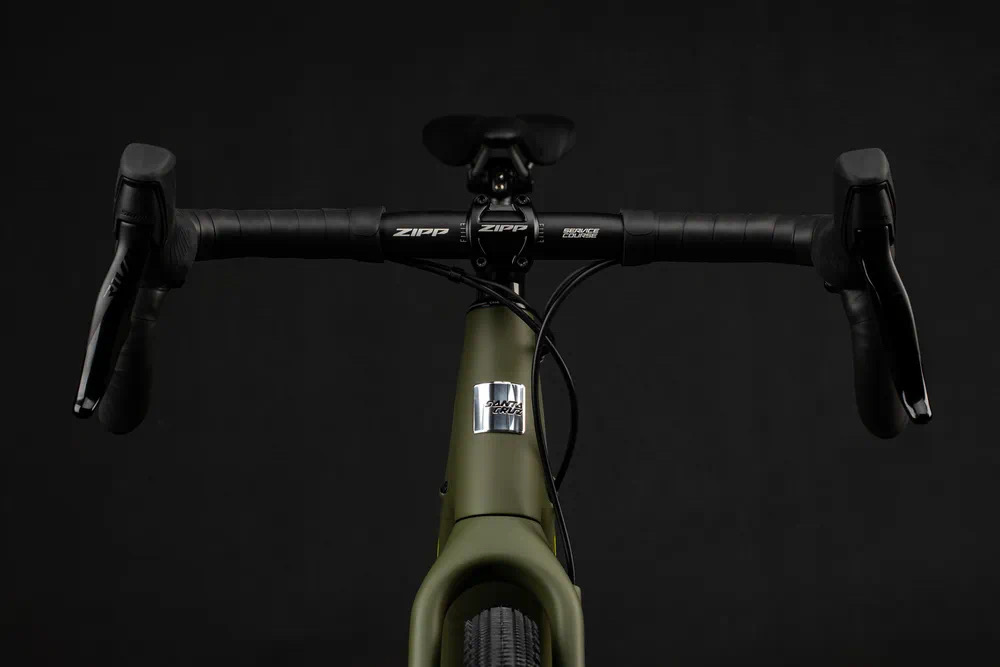 Skitch verwendet Stigmata-inspirierte Carbonfaserrahmen der CC-Klasse (Größen S bis XL), CC-Carbonfaserrahmen, leichte Motoren und Batterien. Dank der High-End-Spezifikationen ist Skitch für ein Elektrofahrrad leicht, da das gesamte Fahrzeug nur 14 kg wiegt mit einem einzigen matten olivgrünen Farbschema.