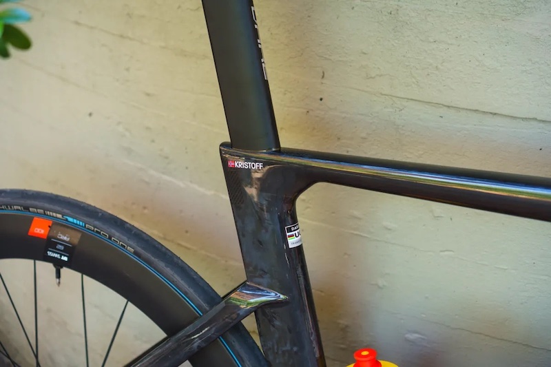 According to Dare, the VSRu had a claimed frame weight of 1,190g in a size small (although Kristof rides a 56cm frame). While we don’t yet have a claimed weight for Velocity Ace frame, we think its deeper tubes and aggressive aerodynamic optimisations have likely added weight.