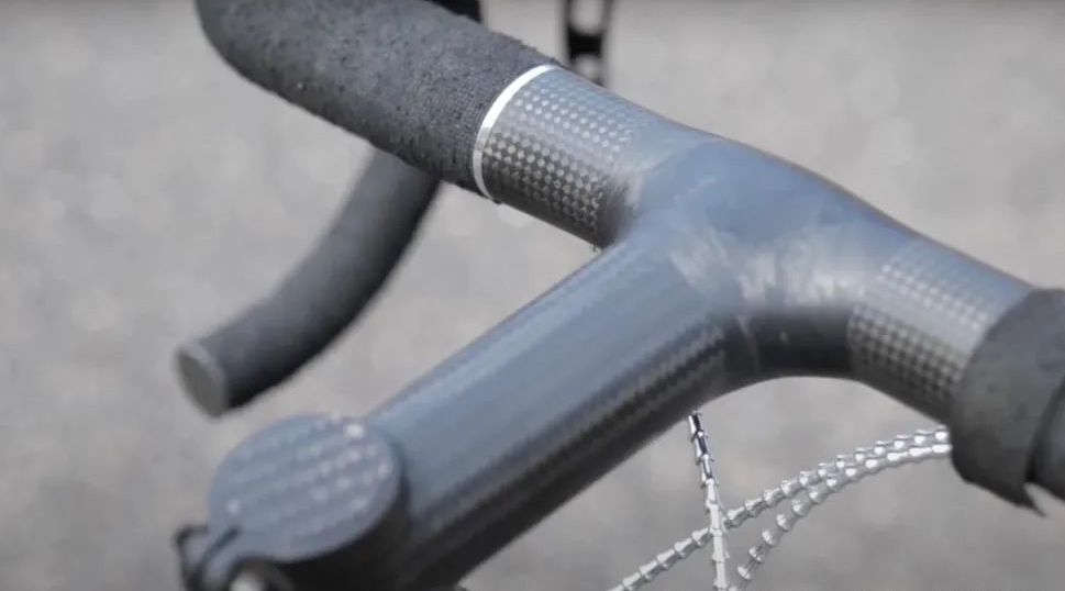 Lenker und Vorbau waren ursprünglich separate Bauteile verschiedener Hersteller, wurden jedoch aus Gewichtsgründen zusammengeklebt.